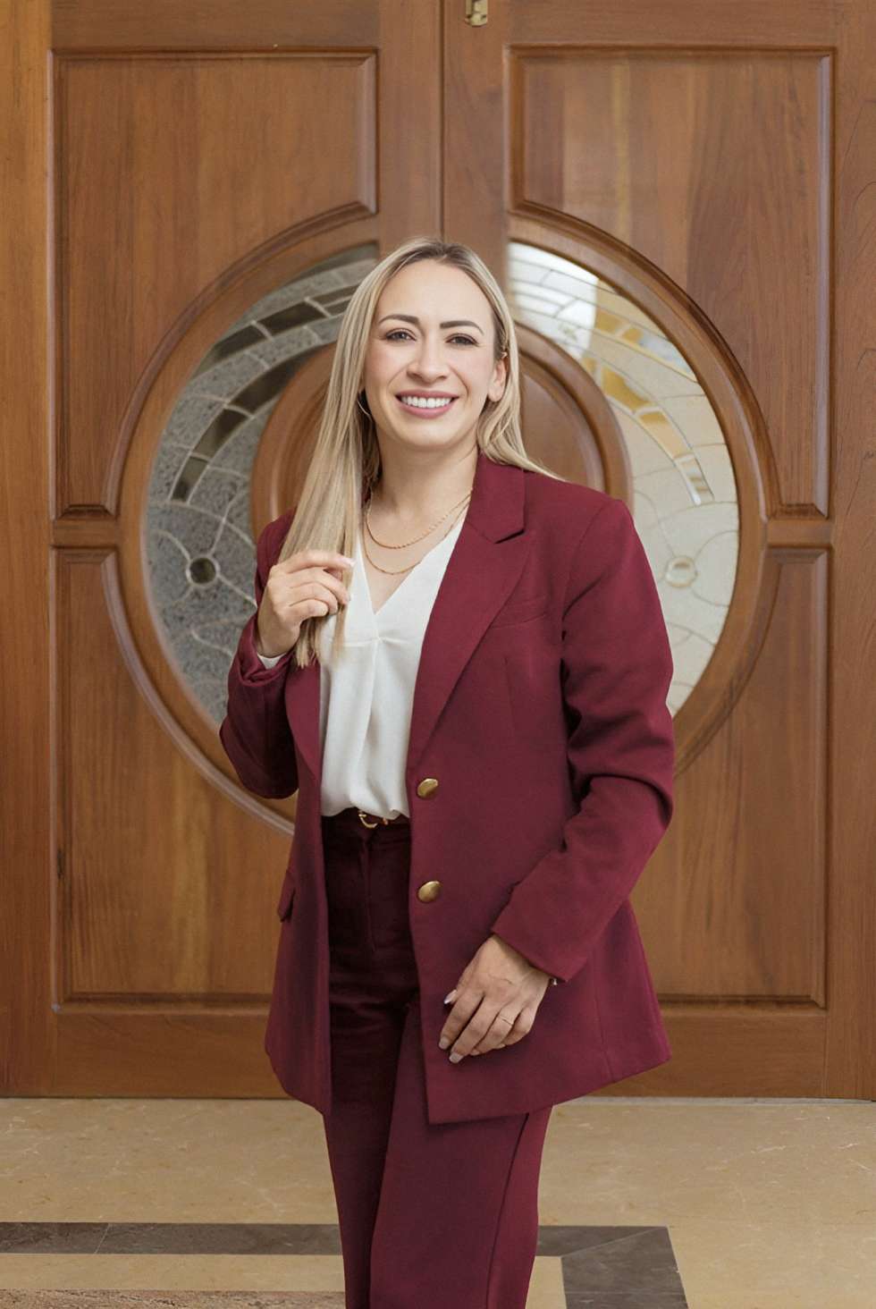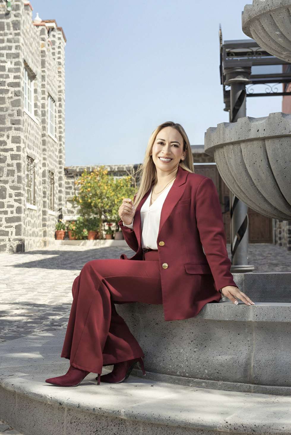 Ataviada en un traje sastre color vino y una blusa blanca, expone permanentemente una sonrisa que la proyecta de manera empática. Cuando habla de Tepeji, se le ilumina la mirada, se nota que tiene el deseo de trascender, que quiere seguir creciendo políticamente, pero también conoce de tiempos y formas, y está dispuesta a esperar su momento.